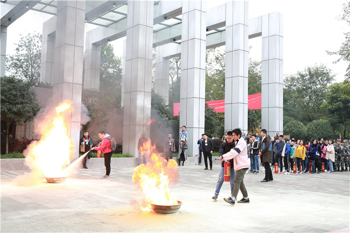 11月9日上午,全校“119”消防宣传月在温江图书馆拉开序幕。党委宣传部、学生处、保卫处、后勤基建处、校团委、图书馆、各学院、预备役应急分队在此联合开展消防应急疏散演练活动,以增强师生消防安全意识,提高火场逃生自救能力。