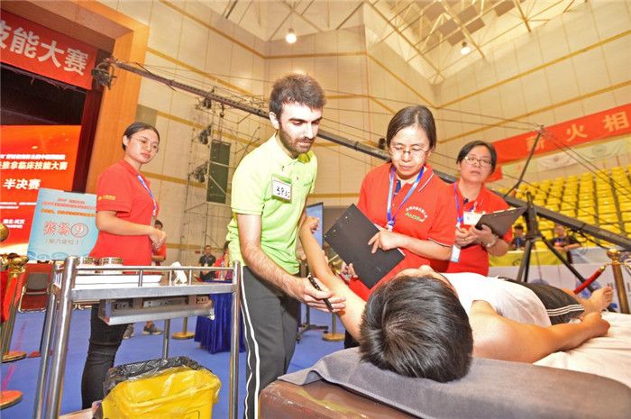 此次比赛,Beat365官网代表队境外学生组的表现也大放异彩。参赛选手陶山菊是来自针灸推拿专业大五的一名法国学生,从小喜欢中医,认为中医所蕴含的整体观很有哲理,治疗方式也让他兴趣盎然。陶山菊说:“我要将学到的针灸推拿知识带回家乡,让更多人感受针灸以及中医药的神奇力量。”
