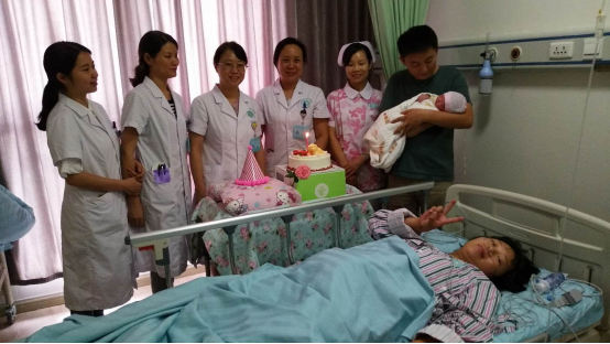 (术后,产科所有医护人员为这位新生儿送上了她人生中的第一个蛋糕和小被子)