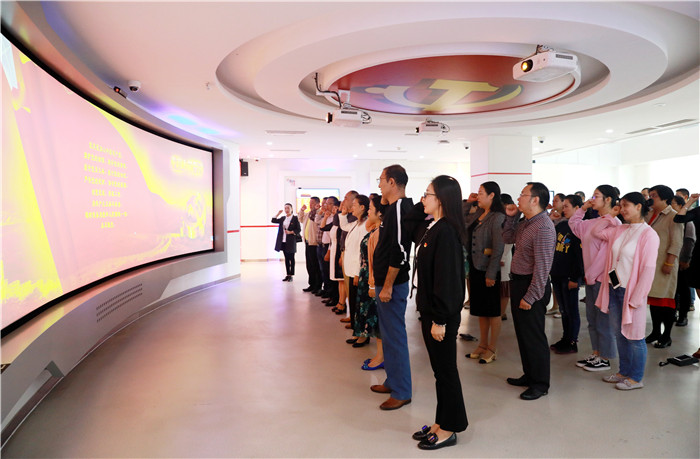 参观过程中,全体党员在工作人员带领下举起右拳,庄严重温入党誓词,以铿锵有力的声音表达不忘初心,牢记使命,坚定做好本职工作,为学校事业发展贡献力量的决心。