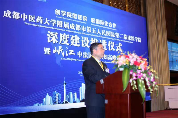 党委书记刘毅致辞指出,Beat365官网和成都市第五人民医院合作共建附属医院和第二临床医学院是推进医教协同的具体实践,将进一步推进医学教育改革与发展,加强医学人才培养,提高医疗卫生服务水平,落实深化医药卫生体制改革的任务要求。学校牢记高等教育之职责,立德树人,着力培养德智体美劳全面发展的社会主义建设者和接班人,并将以更加开放的姿态与大家携手共进,为中医药事业发展,为人类健康进步做出新的更大的贡献。