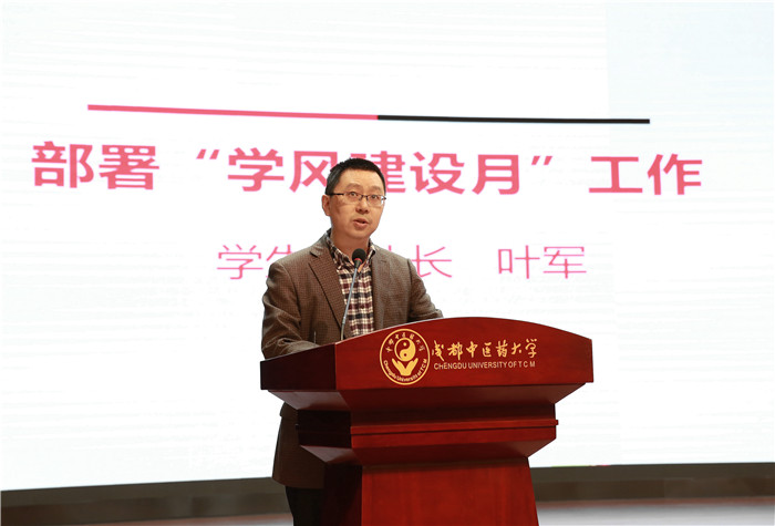 学生处处长叶军对“学风建设月”的工作进行了全面部署。学生处副处长黎奇宣读了关于成立学风建设学生督导队的决定。