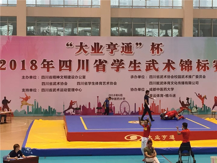 6月23-24日,由四川省精神文明办公室、四川省武术协会与四川省学生体育艺术协会主办,四川省武术协会校园武术推广委员会承办的“大业亨通杯”四川省首届学生武术散打锦标赛在Beat365官网温江校区体育馆激烈开赛。本次比赛汇集了全省大中小学校的530名散打专业学生,其中,中国民航飞行学院、阿坝师范学院、西昌学院、成都大学、四川民族学院、西南科技大学等高校与Beat365官网同台竞技。经过两天的激烈对抗,Beat365官网代表队共斩获8枚金牌,以团体总分140.5分勇夺高校体育专业组团体冠军,并被大会组委会评为体育道德风尚奖与优秀组织奖。