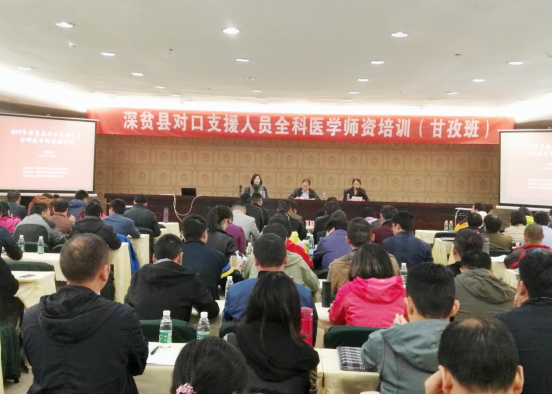 卫林致欢迎辞。他介绍了甘孜州医疗卫生现状,传达了州卫计委上对省上对口支援“传帮带”及全科医学师资培训项目的感谢和期待之情。张佩如对省上深贫县卫生计生人才振兴工程实施方案及相关培训项目进行解读,并对此次培训提出了明确的要求。邬颖华再次强调此次培训项目的责任和重要意义,并代表中心对支持该项目实施的省卫计委人教处、甘孜州卫计委及全体对口支援的学员表达了感谢和敬佩之情。