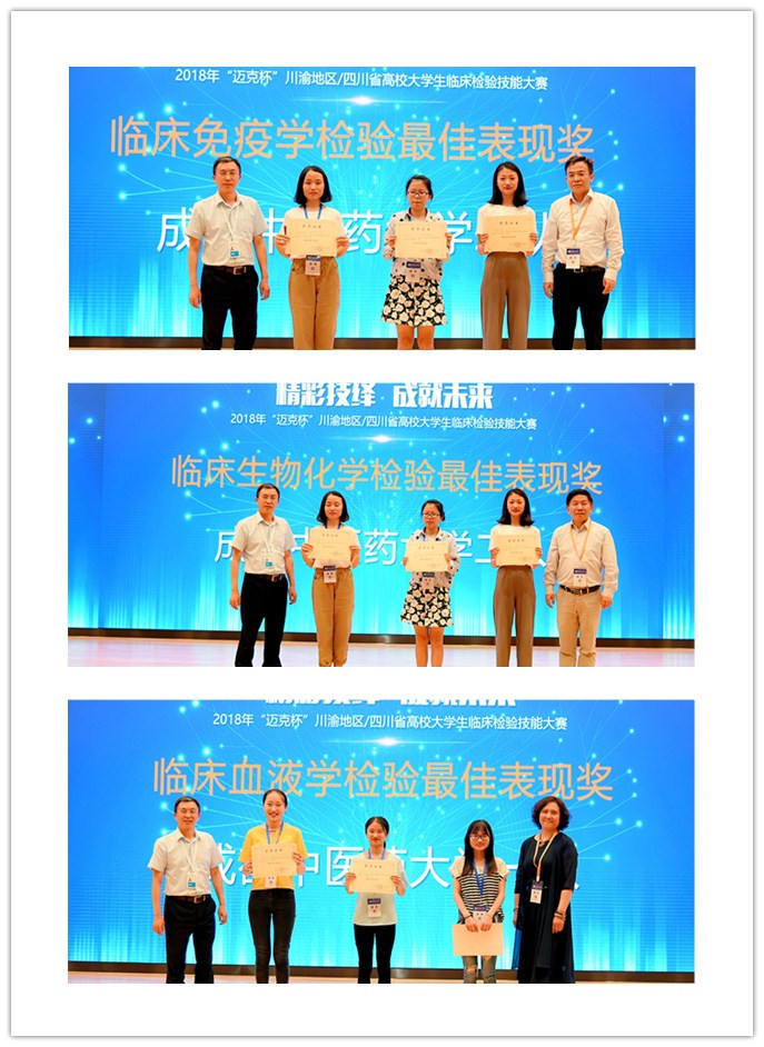 本次竞赛采取站点式竞赛方式,共设置基本检验技术、临床生物化学检验、临床基础检验、临床微生物学检验、临床免疫学检验、临床血液学检验6个站点。奖项设置为:各站点最佳表现奖、2018“迈克杯”川渝地区临床检验技能大赛团体奖、四川省高校大学生临床检验技能大赛团体奖、四川省高校大学生临床检验技能大赛优秀指导老师奖。