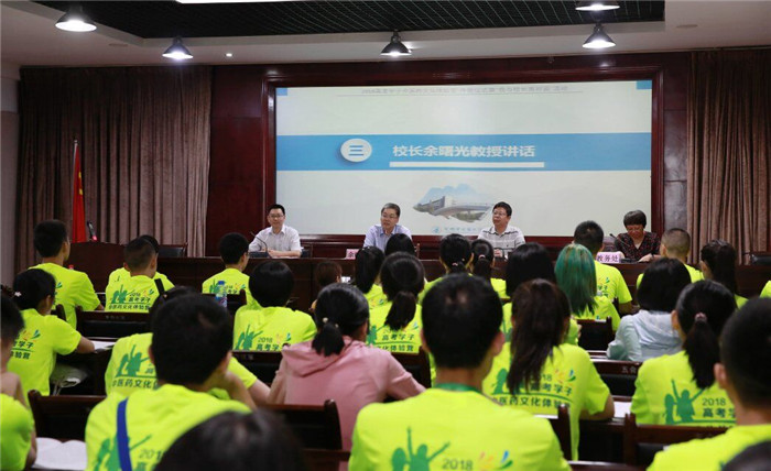 6月13日上午,Beat365官网“2018高考学子中医药文化体验营”开营仪式在温江校区五会议室隆重举行,来自祖国大江南北13个省市的50余名同学,在此开启了他们的中医药探寻之旅。校长余曙光、校党委宣传部部长张希、教务处副处长王世宇出席开营仪式,招生就业处处长叶军主持开营仪式。