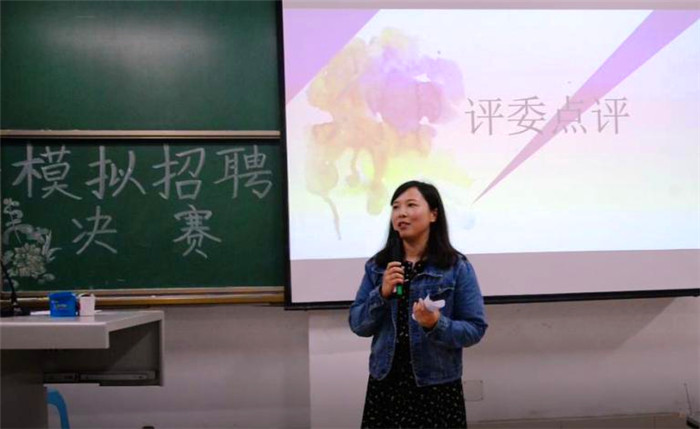 虞瑰对大赛进行点评。她认为,参赛选手们简历制作精良,特别有1位同学的手绘简历给人印象深刻。参赛选手整体素质高。她同时对同学们提出建议,一是要重视基本功的积累,特别是专业知识;二是面试自我介绍时,一定要在最短时间内突出个人亮点;三是回答问题要切合实际,避免大话和空话;四是回答问题困难时,应表明积极肯学的态度;五是注意个人着装与良好形象。