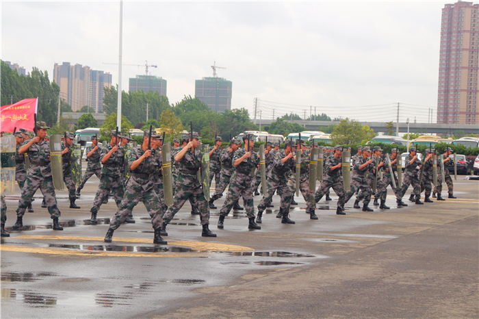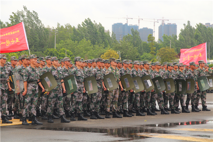 应急分队全体队员不惧瓢泼大雨,准时集结完毕,在完成编制、人员点验和军容风纪检查后,全力投入2018年度集结点验所有军事科目训练汇报表演,并代表一营官兵向师团首长和集结点验工作组汇报了班队列动作、擒敌拳、警棍盾牌术、防暴队形变换、战伤救护等军事科目训练成果。