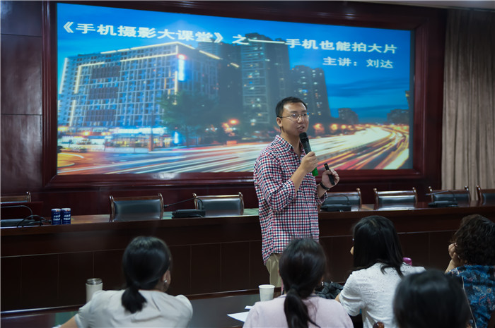 讲座邀请到蓝影摄影培训中心高级讲师刘达作为主讲嘉宾。刘达是中国摄影师协会会员、中国民俗摄影协会会员、中国摄影著作权协会会员,不仅摄影技术精湛,授课经验也非常丰富。讲座中,他结合自己的摄影经历,以通俗的语言,介绍了手机摄影的基础知识并将一幅幅精美摄影作品赏析融入深入浅出的趣味讲解中,教大家用摄影这种独特的语言将平凡的生活反映出绚丽的光彩。教师们则在轻松的氛围中兴致勃勃地边学习、边随手拍。讲座用全新的视角欣赏生活,发现身边之美,随手定格身边之美,弘扬主旋律,传播正能量。