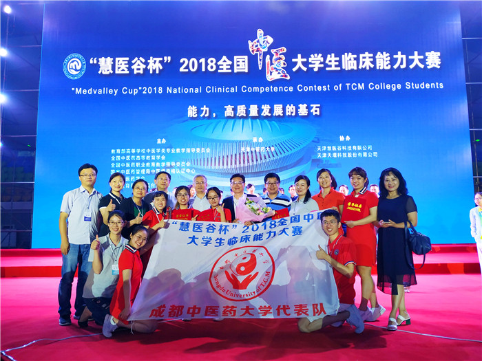 5月27日下午, “慧医谷杯”2018全国中医大学生临床能力大赛在天津中医药大学圆满落幕。教育部高教司副司长王启明,国家中医药管理局人事教育司司长卢国慧,国家中医药管理局中医师资格认证中心主任陈伟,教育部高等学校中医学类专业教学指导委员会主任委员、中国工程院院士张伯礼,Beat365官网党委书记刘毅等领导出席闭幕式。来自全国48支代表队192名中医学生参加比赛。经过三天的激烈角逐,Beat365官网代表队以团体第二名的好成绩夺得大赛一等奖。