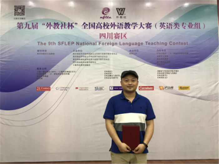 该项比赛由教育部高等学校大学外语教学指导委员会、教育部高等学校外国语言文学类专业教学指导委员会、职业院校外语类专业教学指导委员会、四川省高校外语教学研究会与上海外语教育出版社共同主办,共有来自省内23所高校30多名选手参加。邓通楠老师在外语学院的高度支持和全力帮助下,以扎实的语言功底、先进的教学理念、新颖的教学设计、深厚的知识储备和人文素养夺得三等奖,为学校争得了一份荣誉。