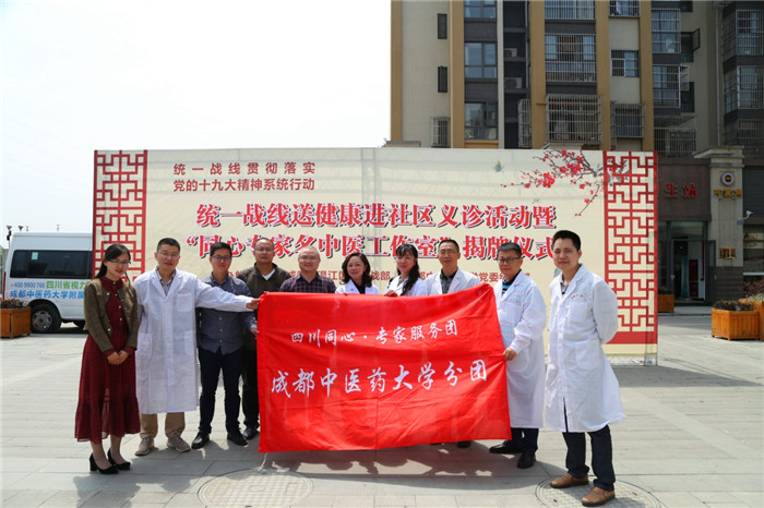 4月26日上午,学校同心专家服务团“中医药健康进社区”义诊活动暨“同心专家名中医工作室”揭牌仪式在温江区永宁镇田园花篱社区举行。学校党委常委、统战部长王军,温江区委常委、统战部长冯静出席仪式并发表讲话,共同为“同心专家名中医工作室”揭牌。学校和温江区部分民主党派基层组织负责人、社区群众代表等约100人参加仪式。