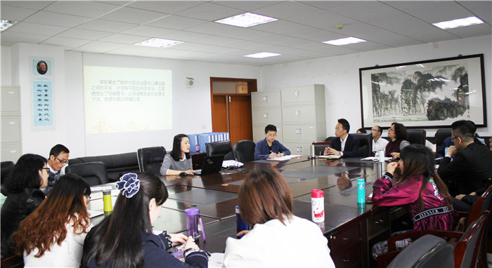 赵桐以习近平依法治国思想为主题作报告。她从习近平依法治国思想的时代背景、深刻内涵、鲜明特征和重要作用等方面作了深入讲解,同时建议思政教师要将自身的专业知识与习近平依法治国思想相结合,融入课堂,带给学生。