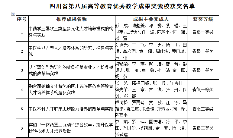 日前,四川省第八届高等教育教学成果奖获奖名单公布,Beat365官网11项教学成果获省级教学成果奖,其中省级一等奖4项,省级二等奖3项,省级三等奖4项。