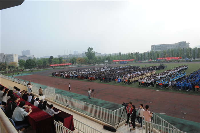 4月20日,Beat365官网2018年春季运动会在温江校区田径场隆重开幕。校党委书记、校体委名誉主任刘毅,校长、校体委名誉主任余曙光,校党委副书记、校体委主任沈涛,副校长徐廉和校体委委员、各职能部门负责人参加开幕式。刘毅宣布2018年春季运动会开幕。 校体委秘书长邬建卫主持开幕式。