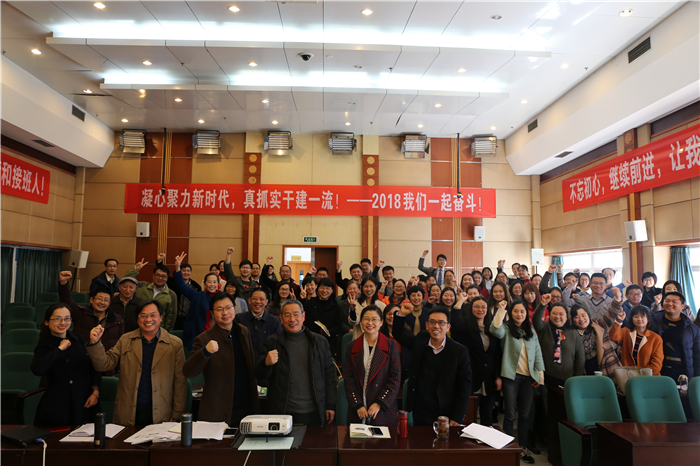 学院党委书记刘世云通报学校2018年工作思路、中层领导干部选拨聘任工作、安全稳定工作和工会工作。他说,2018年是学院学科建设攻坚之年,要以“凝心聚力、开拓创新、攻坚克难、真抓实干”为工作指导思想。一是坚定信心、直面挑战。当前学科建设形势严峻,竞争激烈,要有奋勇争先的信心与勇气。二是聚焦用力、精准发力。学院在高层次人才队伍建设、人才培养、科学研究转化、资源整合提升等方面离一流中医药大学的目标还存在差距,要正视差距、短板,找准标杆,在薄弱之处聚焦用力,精准发力。三是深化改革、开拓创新。一流学科建设与改革并重,完善内部治理结构,全力推行以全员目标考核为核心的内部管理机制改革,制定完善各项制度。四是汇集智慧、凝聚力量。学科建设没有旁观者,只有参与者,要以主人翁的姿态,积极投身于一流学科建设中。全院教职工要不忘初心,砥砺奋进,以新气象、新作为奋斗新时代,在奋斗中共同谱写一流学科建设新篇章。
