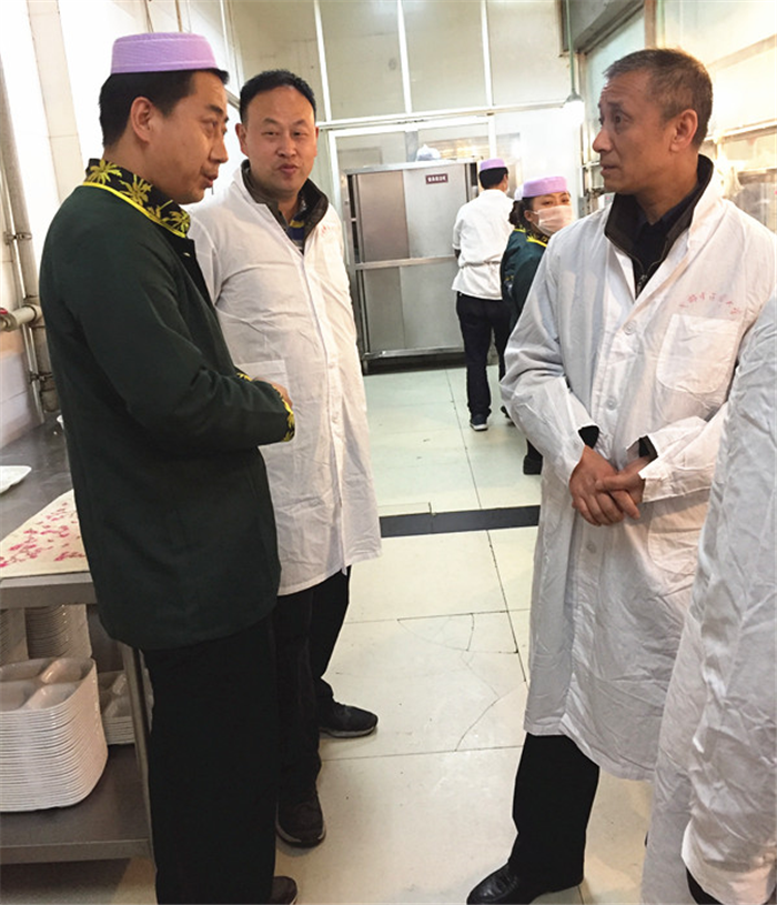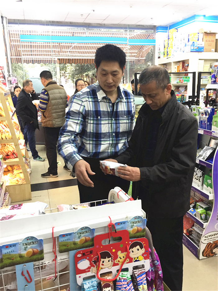 在学生食堂后厨,徐廉仔细查看库房、生肉加工区、米饭生产线、蔬菜农药残留检测室、操作间、清真窗口等区域,认真询问工作人员食品留样、熟食加工、面点制作等工序流程,在食堂就餐区,他还随机了解就餐学生对食堂菜品及服务的满意度。随后,徐廉一行走进食堂和公寓周边超市、饮食经营商铺,仔细查看货架上的食品生产日期和保质期,询问超市负责人对超期食品如何处理、进货渠道等。