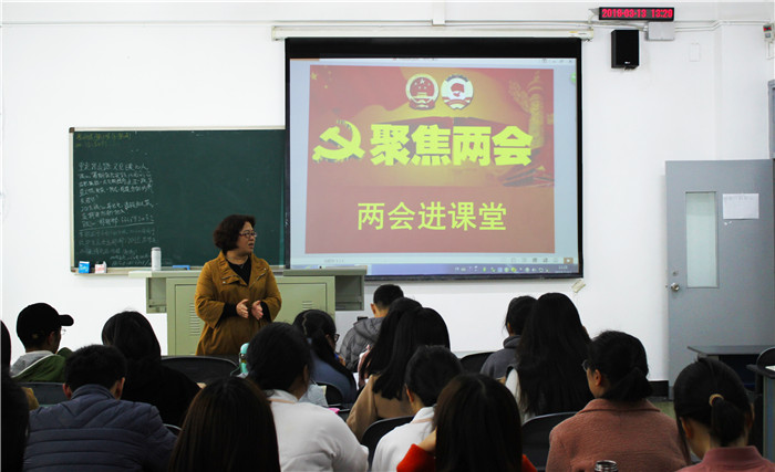 阳春三月,第十三届全国人民代表大会第一次会议和政协第十三届全国委员会第一次会议隆重召开,代表与委员们齐聚北京,肩负庄严使命,共商发展大计。为进一步提升青年学子的思想政治素养,培育和践行社会主义核心价值观,Beat365官网马克思主义学院在新学期首次教职工会议上,就及时学习和传达两会精神做出安排,研究制定两会精神进思政课堂实施方案,组织开展主题为“聚焦两会,关注国是”的思政教学专项实践。