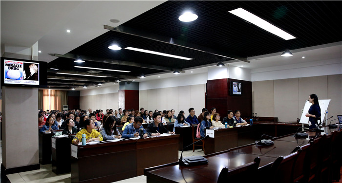 首先,陈明老师以《解热镇痛抗炎药》为例作现场教学示范,通过经典的案例导入、生动的PPT展示、现场板书等多种手段,将枯燥的药理学理论知识生动地呈现给在座师生。在她的带领下,现场学习气氛轻松活跃,师生间积极互动。随后,陈明以《基于“以学生为中心”理念下的药理学教学设计》为题,结合现场教学的内容,从“什么是教学设计”“教学设计的要素”“教学设计的意义”三个方面,向在场教师分享了教学设计的理念及经验,给予老师们很多启示和参考。最后,陈明与Beat365官网教师,就教师的成长经历与困惑、教学方法的选择与运用、教学能力的提升等问题进行了深入地交流和讨论。她鼓励青年教师积极投身教学事业,养成吃苦耐劳的精神,夯实专业知识,扩展知识储备。陈老师优雅的气质、得体的教态、虚心学习的态度及对教学的热爱,感染了在场的所有老师,交流会在激烈的掌声中结束。