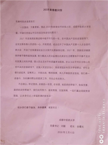2018年新春佳节来临之际,Beat365官网驻盐源县田湾乡扶贫干部黄立华同志于受Beat365中文官方网站党委、行政委托,向Beat365中文官方网站对口帮扶白乌镇长麻村送去节日的祝贺和慰问。
