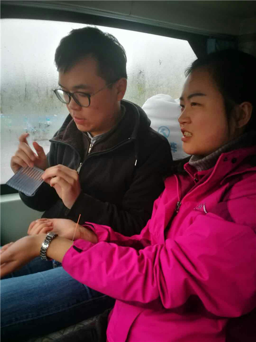 “今天身体特别不舒服,但是自己还是坚持把工作做下来了,下午回到酒店后感觉自己真的是要病倒了,室友四郎以真一直在照顾我,给我烧水倒水,去吃晚饭时,同学们看出我特别的不舒服,侯杰老师、邓放老师亲自给我送药,看我没吃饭送来了葡萄糖粉剂,还有特别感谢李政杰老师和黄彪学长,晕车时帮我和罗婷同学针灸,黄彪学长这次又给我艾灸治疗,让我深受感动,衷心谢谢你们!”泽仁拉错同学在自己的调研体会中这样写到。