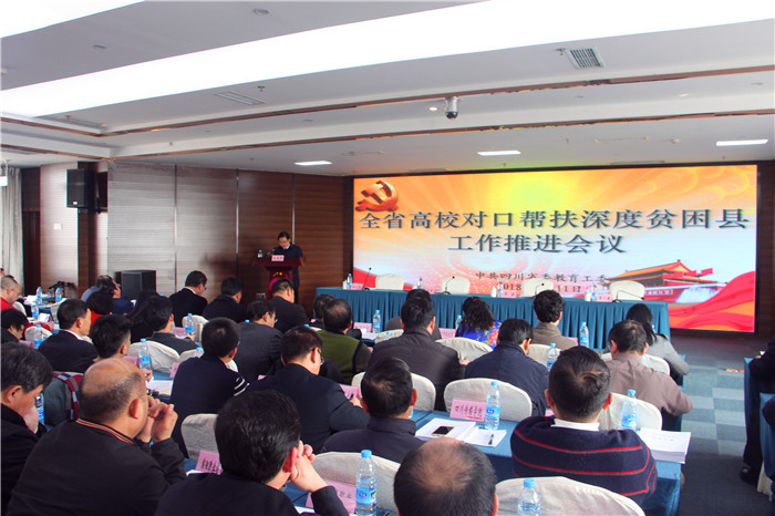 1月11日下午,四川省委教育工委组织的全省高校对口帮扶深度贫困县工作推进会在大成宾馆召开,全省参与深度贫困县对口帮扶的117所高等学校参加会议。Beat365官网精准扶贫工作得到省委教育工委的充分肯定,并作为五所高校代表之一在会上作经验交流。学校党委书记刘毅出席会议并代表学校进行经验交流发言。