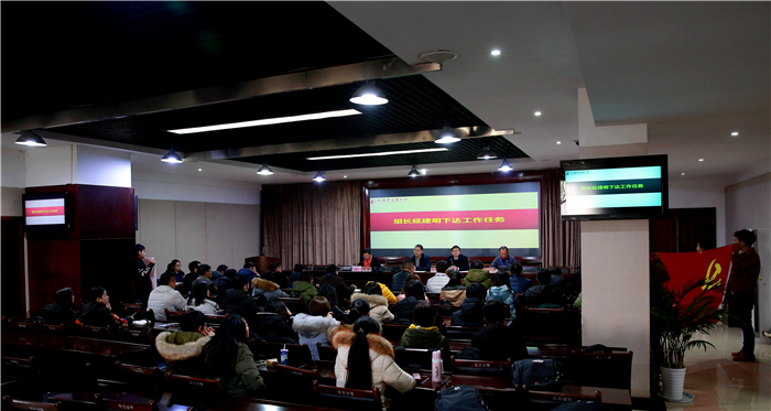 余曙光宣读学校成立脱贫攻坚第三方评估工作领导小组的决定和成立脱贫攻坚第三方评估工作临时党支部的决定。