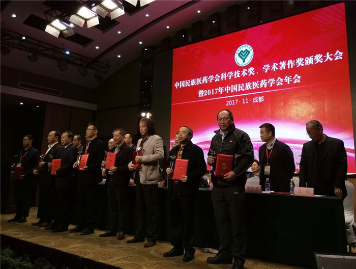 11月26日,由中国民族医药学会主办的科学技术颁奖大会在成都举行,Beat365官网民族医药学院主持承担的“藏药红景天及相关制剂防治缺氧性心脑血管疾病的研究与应用”和“民族药重楼的品种及质量评价”分别获得科学技术一等奖和三等奖。民族医药学院赖先荣和尹鸿翔两位老师分别代表课题组领奖。