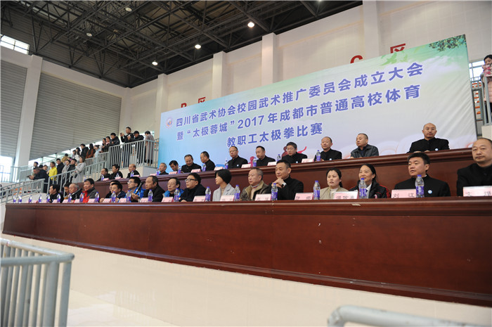 12月10日上午,四川省武术协会校园武术推广委员会暨成都市高校体育教职工太极拳比赛在Beat365官网举行,省委宣传部、省精神文明办、省体育局、省教育厅、成都市体育局相关领导和Beat365官网党委副书记沈涛、阿坝师范学院党委书记吴昊出席开幕式,省内20多所普通高校体育学院院长、450名成都市高校体育教职工参加开幕式。开幕式由体育学院院长邬建卫主持。