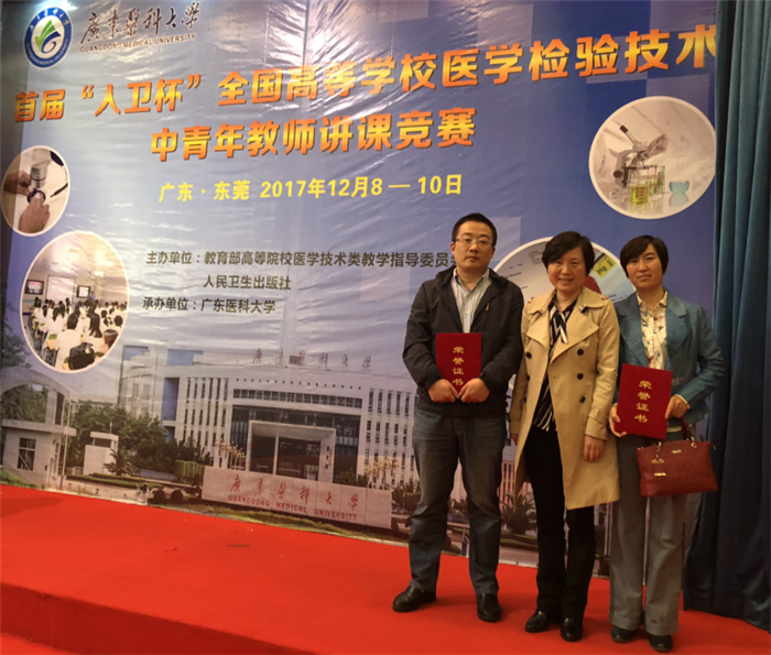 Beat365官网医学技术学院乔凤伶、王旭东两位老师参加此次大赛,他们丰富的教学内容和充满个性亮点的授课方法,展示了个人的教学风采,给大家留下了深刻的印象。经过一天半的激烈角逐,最终乔凤伶获得三等奖,王旭东获得优秀奖。