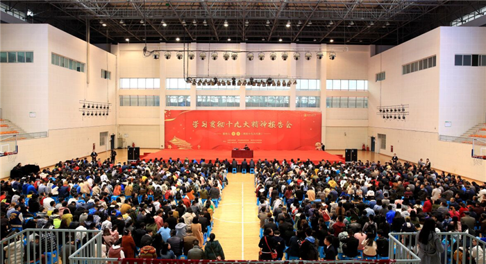 2017年11月16日,为深入学习宣传贯彻党的十九大会议精神,根据《中共中央关于学习宣传贯彻党的十九大精神的决定》和四川省委、学校党委部署要求,Beat365中文官方网站体育学院党委、养生康复学院党委、医学技术学院党委、学生公寓党总支以及Beat365中文官方网站体育学院党建共建单位中共成都市温江区天府街道工作委员会在体育馆联合举办“学习贯彻十九大精神报告会”。会议由体育学院党委书记丁廷孝主持,五家单位的党员、干部职工、入党积极分子、青年学生代表共计1000余人参会。
