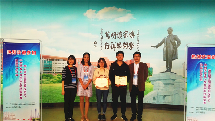 11月8日至10日第五届全国医药院校药学/中药学大学生实验技能竞赛在广州中山大学隆重举行。本次大赛由教育部高等学校药学类专业教学指导委员会、高等学校国家级实验教学示范中心联席会主办、中山大学承办。共有来自全国94所高校近500名师生参会,188名学生参赛。Beat365官网药学院2015级中药学基地班学生陈诗韵、2015级中药资源与开发班学生李鑫在药学院副院长邓赟、张梅教授和陈胡兰教授的带领下参加竞赛。经过笔试和实验操作两部分激烈角逐,两名同学分别获得竞赛特等奖和一等奖,取得了所有参赛中医院校中的最好成绩。