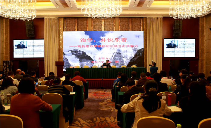 阎钢结合十九大报告中关于加强思想道德建设和党中央对青年寄于殷切期望的内容,作了题为《治学,并快乐着——高校思政课教师如何提升治学能力》的专题报告。