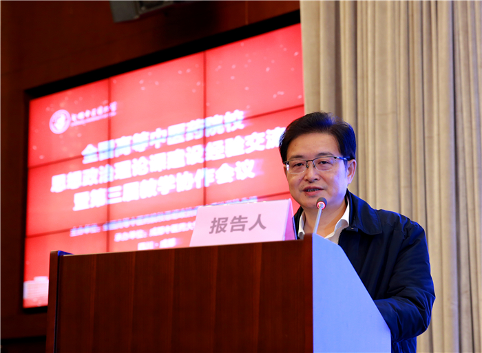 刘毅代表学校致欢迎辞。他结合习近平总书记所作的十九大报告、在全国高校思想政治工作会议上讲话精神学习,指出十九大报告思想深邃、内涵丰富、意义深远,全体思政课教师要进一步加强报告学习,系统把握报告精神,深刻理解习近平新时代中国特色社会主义思想。要不忘初心、牢记使命,切实把握新时代高校思想政治理论教育的新内容、新要求、新需要,坚持以德立教,全面推进德育育人。刘毅强调,新时期进一步加强和改进高校思想政治理论课建设,一要高度重视,充分发挥思想政治理论课价值引领作用。思想政治理论课是对学生进行系统思想政治理论教育的主阵地,是传播马克思主义科学理论、培育和弘扬社会主义核心价值观的重要载体,必须坚持在改进中加强、在创新中提高,必须以价值塑造为核心,坚决打赢思想政治理论课质量攻坚战。二要抓好关键,全面提高思想政治理论课质量水平。教师是上好思想政治理论课的关键,必须大力加强教师队伍建设。思想政治理论课教师要以模范的言行为学生树立榜样,努力成为学生健康成长的指导者和引路人。三要创新方法,不断增强思想政治理论课的亲和力吸引力。思想政治理论教育要遵循教学规律和学生成长规律,要因材施教、因时而新;要注意方法,注重潜移默化;要接地气、贴近学生;要有温度,注重心理疏导和情感关怀。四要整合资源,着力建设具有中医药特色的思想政治理论课。要增强发展中医药事业和弘扬中医药文化的自信自觉,利用好中医药的“五大资源优势”,打造具有中国特色和国际视野的学术话语体系,不断推进中医药事业发展。要充分发掘中医药文化中的思想政治教育资源。要结合专业、行业和医药卫生事业的改革发展,探索出具有中医药文化特色的思想政治教育教学,进而推动中医药高校事业的更好发展。