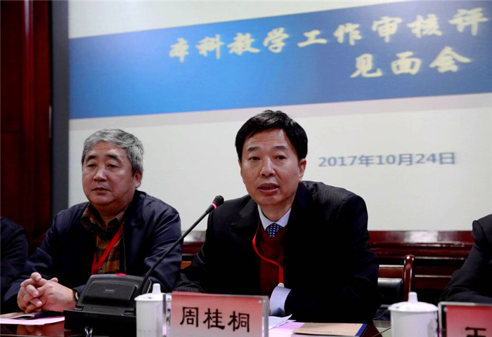 周桂桐介绍了本科教学审核评估的目的、意义、基本程序、内容、方式方法等。他说,Beat365中文官方网站是新中国最早建立的四所中医药高等院校之一,历史底蕴深厚、实力突出、特色鲜明,对新中国高等教育由传统教育向现代教育方式的成功转变做出了极大贡献。学校对本科教学工作审核评估高度重视,做了大量、长期的准备工作,在已开展的评估建设中取得了较好成绩。周桂桐强调,专家组此行的目的是“问诊把脉”,将按照评估工作方案,通过深度访谈、现场考察、走访座谈、听课以及查看资料等方式,围绕本科教学工作审核评估指标体系,提出反馈意见,帮助学校做好本科教学审核评估准备工作。专家组将本着对学校负责的态度,精心、认真工作,希望学校各单位密切配合,共同为学校办学质量提高、促进学生成才与成长努力。
