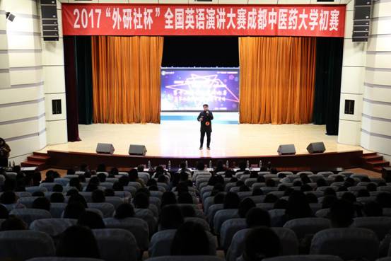 10月24日晚,由学校宣传部、学生处、科技处、校团委主办,外语学院承办的2017“外研社杯”全国英语演讲大赛校内选拔赛决赛暨外语学院第二届外语技能大赛开幕式在百会堂演播大厅举行。经过初赛、复赛选拔,共有来自临床医学院、第二临床医学院、药学院、针灸推拿学院、护理学院、医学技术学院、外语学院等七个学院的10名选手入围决赛。外语学院教师李颖、程林昊、邱爽、赖寒、孟悦、刘军以及外籍教师Shane Lucas担任比赛评委。学校学生处、校团委等职能部门负责人,各学院分团委书记,外语学院教师与近500名学生一同观看比赛。