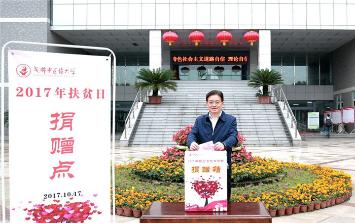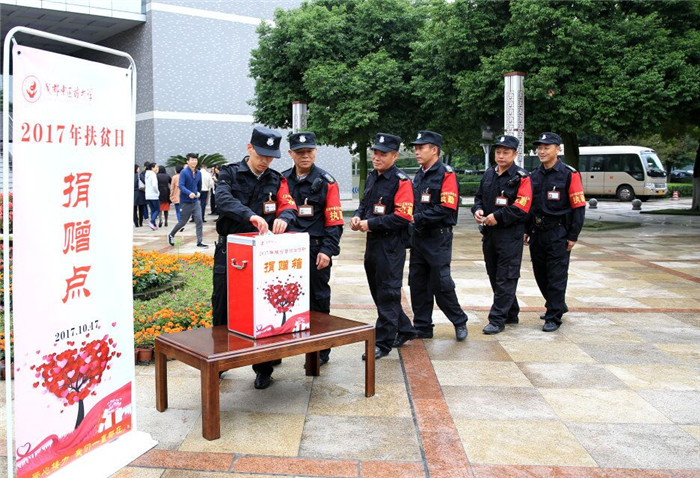 10月17日是我国第四个“扶贫日”,也是第25个国际消除贫困日。上午10时,Beat365官网“扶贫日”集中募捐活动在温江校区行政楼前举行,学校在家校领导、行政管理人员、校卫队队员、后勤职工等踊跃到场捐献。同时,学校在温江校区通惠广场、温江校区二食堂前也设立了捐赠点,向全校教职工、学生募集捐款。捐赠活动中,校领导班子成员积极带头,教职员工、同学纷纷响应,大家尽己所能、慷慨解囊,扶贫日当日全校共募集善款15708.6元。
