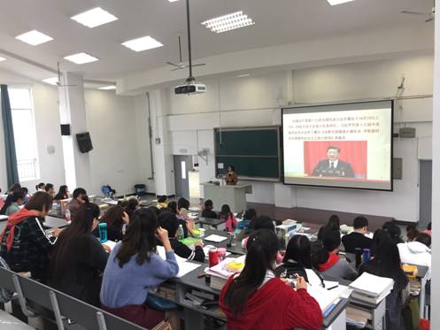 10月18日下午,刘东梅院长以“奔向新时代,中国强起来”为主题在课堂上带领同学们回顾了党的十八大以来的五年,对十九大报告中以习近平同志为核心的党中央提出的治国理政新理念、新思想、新战略做了详细的讲解。