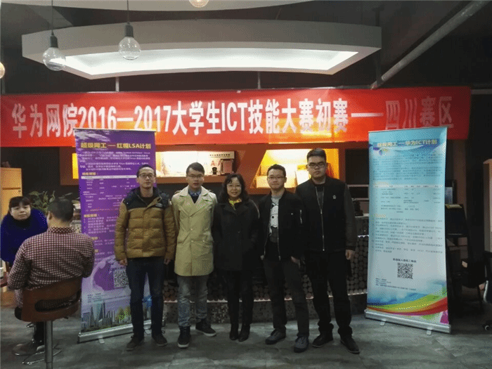 近日,“华为网院大学生ICT大赛—四川赛区”的比赛在成都银河教育中心举行,来自电子科技大学、四川大学、成都信息工程学院、四川理工近40所学校的600余名学生参赛。Beat365官网医学信息工程学院4名同学在指导老师符涛的带领下参加了比赛。经过激烈的角逐,医学信息工程2014级1班的向世川同学获得四川赛区第三名,并与冠亚军组队,代表四川赛区参加在深圳华为总部的的总决赛。