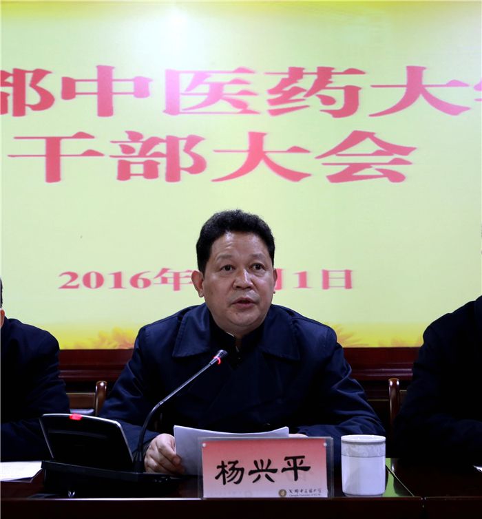 杨兴平强调指出,中医药发展已上升为国家战略,党的十八大、十八届三中全会对中医药发展作出了重要部署,习近平总书记提出着力推动中医药振兴发展,要把老祖宗留给我们的中医药宝库保护好、传承好、发展好,坚持古为新用,努力实现中医药养生文化的创造性转化、创新性发展,使之与现代健康理念相融相通,服务于人民健康。希望全校上下要深入领会中央和省委的新要求,紧紧抓住中央和省委发展中医药的重大契机,紧紧围绕省委治蜀兴川的决策部署,充分发挥中医药的独特优势,进一步开拓创新、锐意进取,努力把各项工作推向新的水平,早日建成国内一流、国际知名特色鲜明的高水平中医药大学。