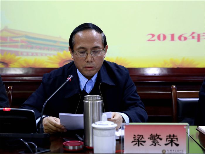梁繁荣发言时表示,坚决拥护省委、省政府的决定,衷心感谢组织的关心、支持和培养。他简要回顾1987年7月到校工作近三十年来的历程,从自然科学基金申报、科研经费、重大科研成果、重点学科建设、学位点建设、杰出优秀人才培养、科研创新平台建设取得重大突破七个方面回顾担任学校副校长15年的工作。从学校内部管理明显规范、学校改革发展意识明显增强、教职工福利待遇明显改善、学校办学条件明显改善、学校经济状况明显好转、学校声誉和影响明显扩大六个方面回顾2013年担任学校校长以来的工作。梁繁荣借用印度诗人泰戈尔的诗句“空中没有留下鸟的痕迹,可是鸟儿已经飞过”,表示自己永远是光荣的成中医人,将继续关心、支持学校的发展,义无反顾为此奉献余生。他希望学校在新领导班子的带领下,把工作做得更好,让学校发展更快。他说,“只要我们志存高远,扎实努力,敢于攻坚克难,就一定能够把Beat365中文官方网站建设成为国内一流、国际知名的高水平中医药大学!”