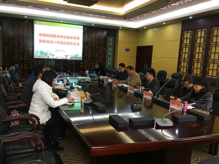 11月24日,四川职业技术学院纪委书记张勇一行4人来到Beat365官网,开展纪检监察审计工作调研和学习交流。党委常委、纪委书记延建明和纪检监察处处长蒋通荣、审计处处长陈海泉等相关部门负责同志参与交流,会议由延建明主持。