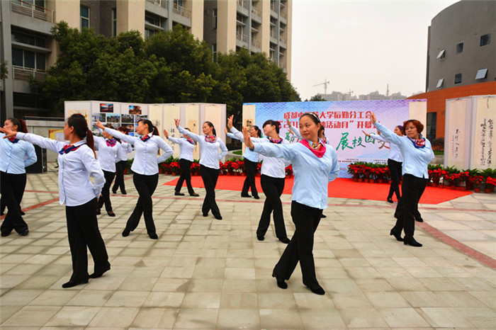 为了丰富后勤员工的精神文化生活,推动全民健身,增强职业自豪感,促进后勤团队的团结和谐,迎接学校第二次党代会召开,11月11日,由后勤党总支、后勤基建处、后勤分工会主办,各党支部、各工会小组承办的以“炫后勤风采、展校园文化”为主题的“文体活动月”活动在温江校区李斯炽广场隆重开幕。校纪委书记延建明、学校相关职能部门负责人、后勤基建处班子成员与300多名后勤员工共同参加开幕式。