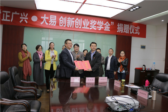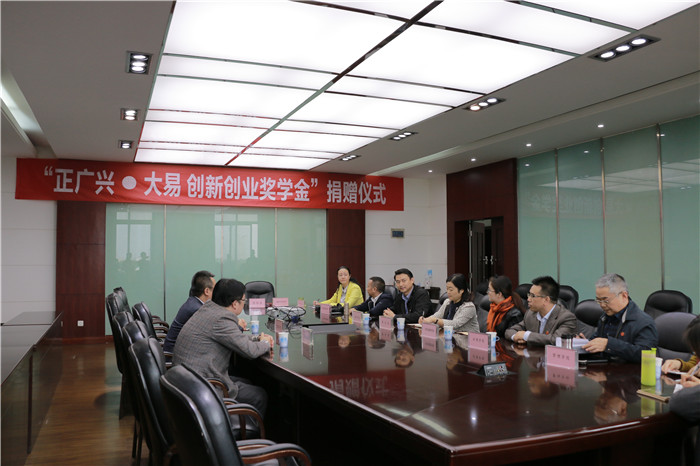 10月24日下午13:30,“正广兴·大易创新创业奖学金”捐赠仪式在学校温江校区行政楼第四会议室举行。成都正广兴健康咨询有限公司董事长段民屹签署了给学校的捐赠书,并获颁捐赠荣誉证书。参加捐赠仪式的还有广州市大易健康科技研发有限公司董事长杨永利,学校对外合作处处长陈学先、学生处处长周茜等。