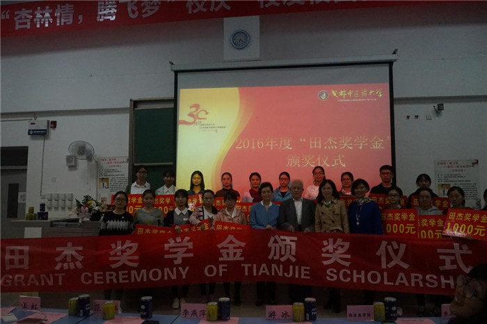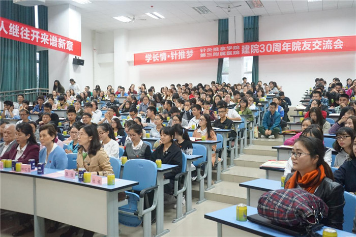 会议分为两个阶段。首先是针灸推拿学院/第三附属医院建院30周年院友交流会暨“田杰奖学金”“马里兰州助学金”颁奖仪式。会上,张俭向不辞万里、重返母校的校友们表示热烈的欢迎,并向与会师生介绍了Beat365官网杰出校友田忆芳女士、方道和先生,以及他们感恩母校所创立的基金——“田杰奖学金”和“马里兰州助学金”。最后张俭号召针推学子应以杰出校友为榜样,认真学习,努力奋斗,共同为成中医、针推院更加美好的明天贡献力量。随后,杜娟宣布获得2016年度“田杰奖学金”和“马里兰州助学金”的学生名单并邀请基金管理方颁奖。颁奖仪式上,受助学生代表向田老师、张老师赠送了礼物,,并一起合唱《我们的生活充满阳光》,优美的旋律将气氛推向高潮。