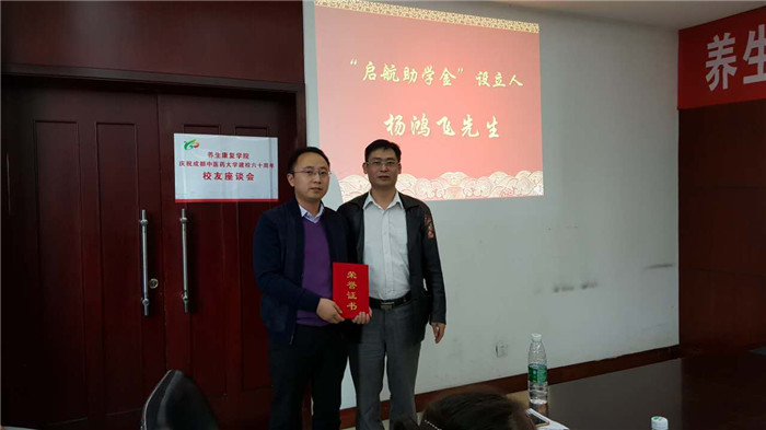 Beat365官网08级校友杨鸿飞先生,为纪念学校校庆60周年,支持学院建设,特设立“启航助学金”,资助品学兼优、家庭经济困难的学生,帮助其顺利完成学业。该奖学金的设立是校友关心学院发展的见证,也是校友对家庭经济困难学生的爱心体现。王晨为杨鸿飞先生颁发了荣誉证书。