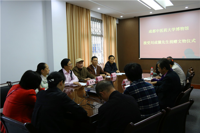 10月10日,Beat365官网药学院退休教师刘成骥先生捐赠文物仪式在十二桥校区医史博物馆举行。学校副校长彭成及离退休工作处、医史博物馆领导和部分工作人员参加了捐赠仪式。