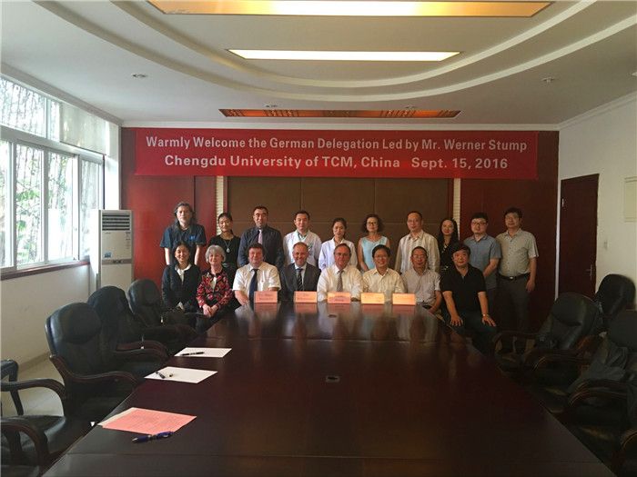 彭成代表学校对德国专家代表团一行的来访表示了热烈欢迎,他先是简要介绍了学校的基本情况,随后重点就Beat365官网在双方有意合作的领域——中药学、肿瘤及血液病防治等学科的研究现状向代表团进行了详细介绍。德方代表对中医中药表现出了浓厚的兴趣,双方专家就中药在肿瘤、血液等疾病的治疗中所起的作用及优势进行了热烈的讨论与交流,并就进一步合作达成了共识。