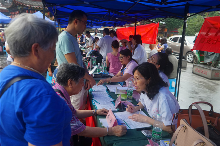 义诊现场,4位教授、名医组成的专家团队,其中两名为四川省第三届“榜样中国•我心目中的名医”、“中医科十大名医”。12名医师、护师组成的义诊团队为热心市民提供6类专科健康咨询及义诊服务,诊疗居民200余人次。柳城街道新市民培育工作组发放法治教育、技能培训政策、养生保健等宣传资料1000余份,接受法律和就业咨询130余人次。