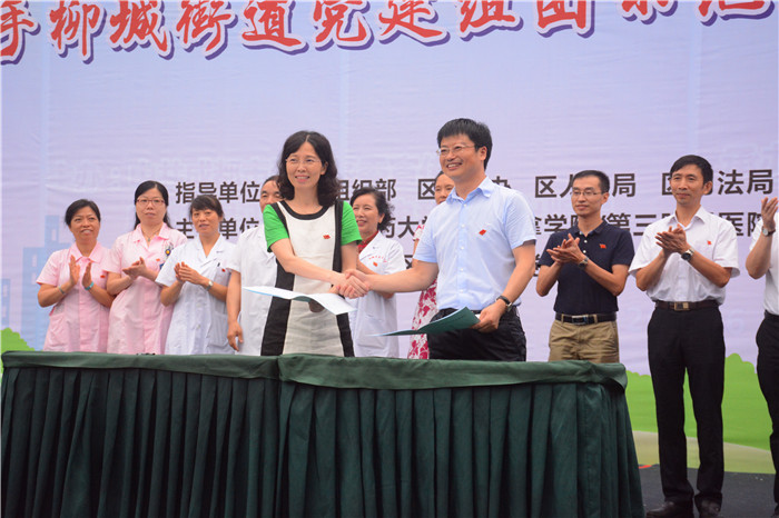 为进一步开展“两学一做”学习教育,深化与温江区“校地合作党建组团”项目,7月23日上午,针灸推拿学院/第三附属医院携手温江区柳城街道开展“党建组团示范暨新市民培育”主题活动,针灸推拿学院/第三附属医院分党委、柳城街道党工委以及温江区委组织部、文明办、司法局主要负责同志出席活动。学院/医院临床医疗党支部积极响应,选派了四川省名中医等16名临床一线工作的医护骨干力量和学生党员志愿服务队组成的义诊服务团队为社区居民提供健康咨询及义诊服务。